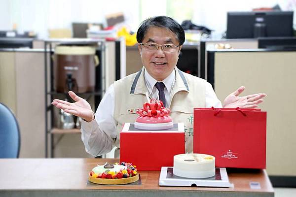 【新南瀛記者黃鐘毅報導】台南市長上任以來經常為台南美食、農產代言,成為另類知名網紅,香格里拉台南遠東國際大飯店在今年全台飯店母親節蛋糕比賽中,分別獲得傳統類、起士類、派塔類等3項類組第1名,是參賽者中唯一囊括奪得「3冠王」的飯店;母親節將屆,該飯店5日慕名帶冠軍蛋糕來贈送黃偉哲市長品嚐,黃偉哲看到高貴又美麗的蛋糕,直說要帶回家送給媽媽,讓市長媽媽也能過一個難忘的母親節。